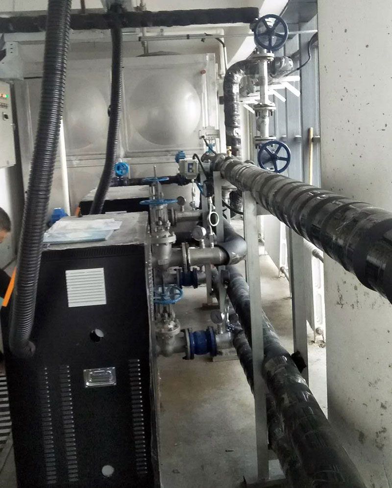 解决方案:采用2台100kw稀结板式半导体电锅炉并联